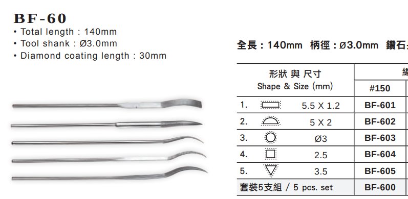 BF-600 ELMAS EĞE TAKIMI 5 PARÇA